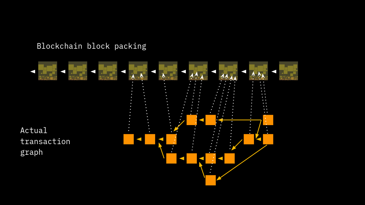 <figure><img src="https://160813645-files.gitbook.io/~/files/v0/b/gitbook-x-prod.appspot.com/o/spaces%2FaUAGORrT1fl6qzaZSTKt%2Fuploads%2Fgit-blob-367f68dff0e8841fed5e6b5067dde4f13b9f5ab0%2Ftransaction-graph-1.png?alt=media" alt=""><figcaption><p><strong>The transaction graph of Public Blockchains cannot be sharded due to internal consistency.</strong></p></figcaption></figure>