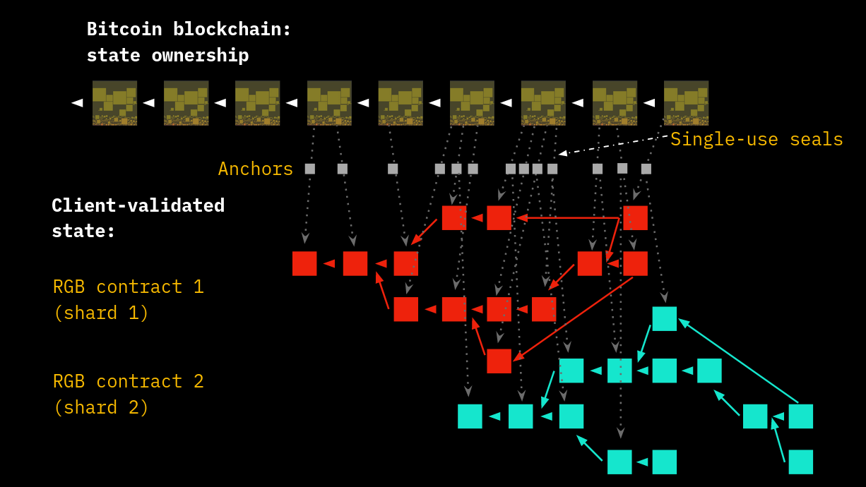 <figure><img src="https://160813645-files.gitbook.io/~/files/v0/b/gitbook-x-prod.appspot.com/o/spaces%2FaUAGORrT1fl6qzaZSTKt%2Fuploads%2Fgit-blob-d17d30f9b44773d10e2fe6027332476befc0baad%2Fcsv-shard-1.png?alt=media" alt=""><figcaption><p><strong>Several shards can be aggregated in a single Layer 1 transaction. The Anchor structure establish a link between the client-side data of the contract and the single-use seal.</strong></p></figcaption></figure>