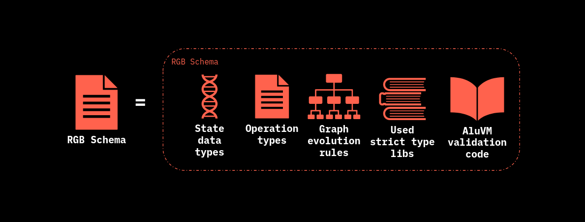 An RGB Schema represents a template that can be used to issue contracts having a common structure, embedding the rules of [contract operations](https://docs.rgb.info/annexes/glossary#contract-operation) representing its [business logic](https://docs.rgb.info/annexes/glossary#business-logic) and thus describing how its [state](https://docs.rgb.info/annexes/glossary#contract-state) can be updated. Each contract implementing a schema assigns concrete values to contract fields in its Genesis, defining global state and initial owners for the newly created owned state.
