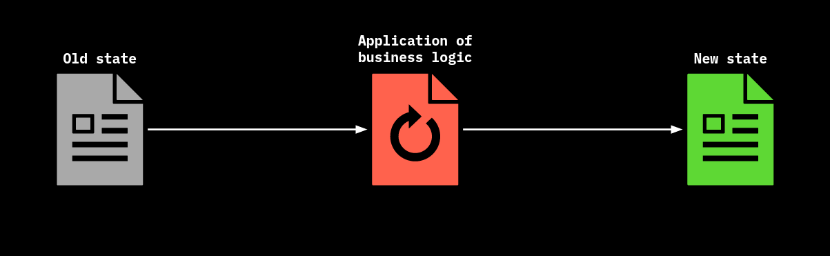 ![In order to evolve, smart contract states must fallow a business logic.](https://160813645-files.gitbook.io/~/files/v0/b/gitbook-x-prod.appspot.com/o/spaces%2FaUAGORrT1fl6qzaZSTKt%2Fuploads%2Fgit-blob-a55f3330118cef820f7ac38ce9670f6ba28220ac%2Fstate-business-logic.png?alt=media)